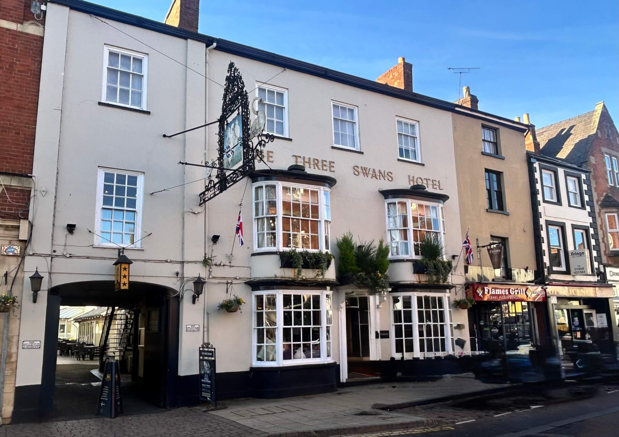 Three Swans Hotel in Market Harborough, what a glorious slice of English history! Nestled along the old coaching routes from London to Manchester, this splendid inn has stood since at least the 16th century, welcoming travellers with warmth, wit and a helpings of good cheer Picture the clatter of hooves and the rumble of carriages as this coaching inn bustled with activity, long before motorways and mobile phones. It was a hub of gossip, letters, ale, and rest, where weary souls found a hot meal and a soft bed. But it wasn’t just merchants and mail coaches who crossed its threshold. This remarkable inn even hosted King Charles I during the turbulent times of the English Civil War. Imagine it, Royal footsteps on these old floorboards, whispered secrets over tankards of ale, and the flicker of candlelight dancing on the walls. The King himself is said to have addressed his troops from the high street balcony, a moment of pure, spine-tingling theatre in a town brimming with tales.